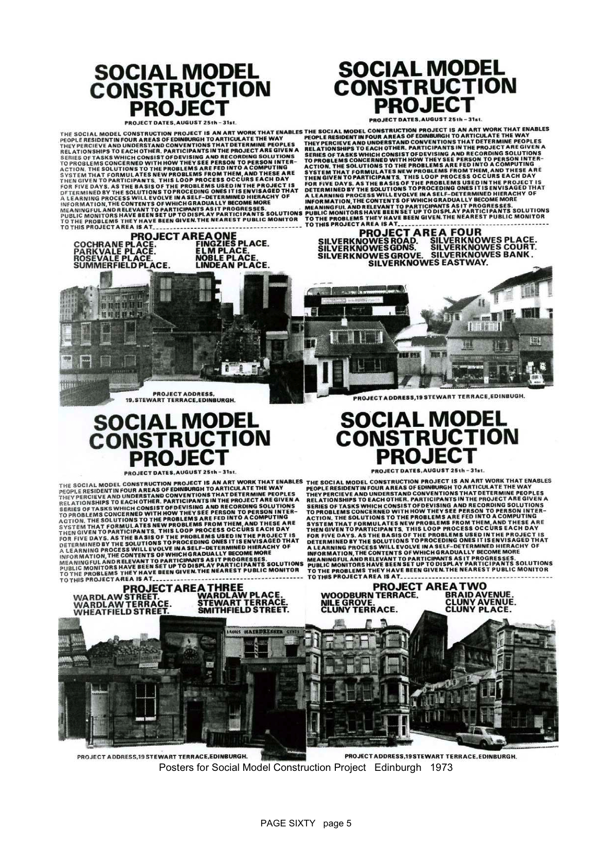 A decade before Pat Purdy and the Glue Sniffers’ Club, and in the same year that Turbary Common escaped redevelopment by that single vote, Stephen Willats’s groundbreaking 1973 Social Model Construction Project put a networked and interactive ‘portable teletype terminal’ in the streets of Edinburgh to explore and facilitate a new kind of social agency. Building upon code developed by Stuart Pound of the Society for Social Responsibility in Science the project was designed to enable ‘people resident in four areas of [the city] to articulate the way they percieve [sic] and understand conventions that determine peoples relationships to each other.’ (The project is discussed in some depth in a recentish interview between Willats and George Mallen for the Computer Arts Society newsletter here.)
