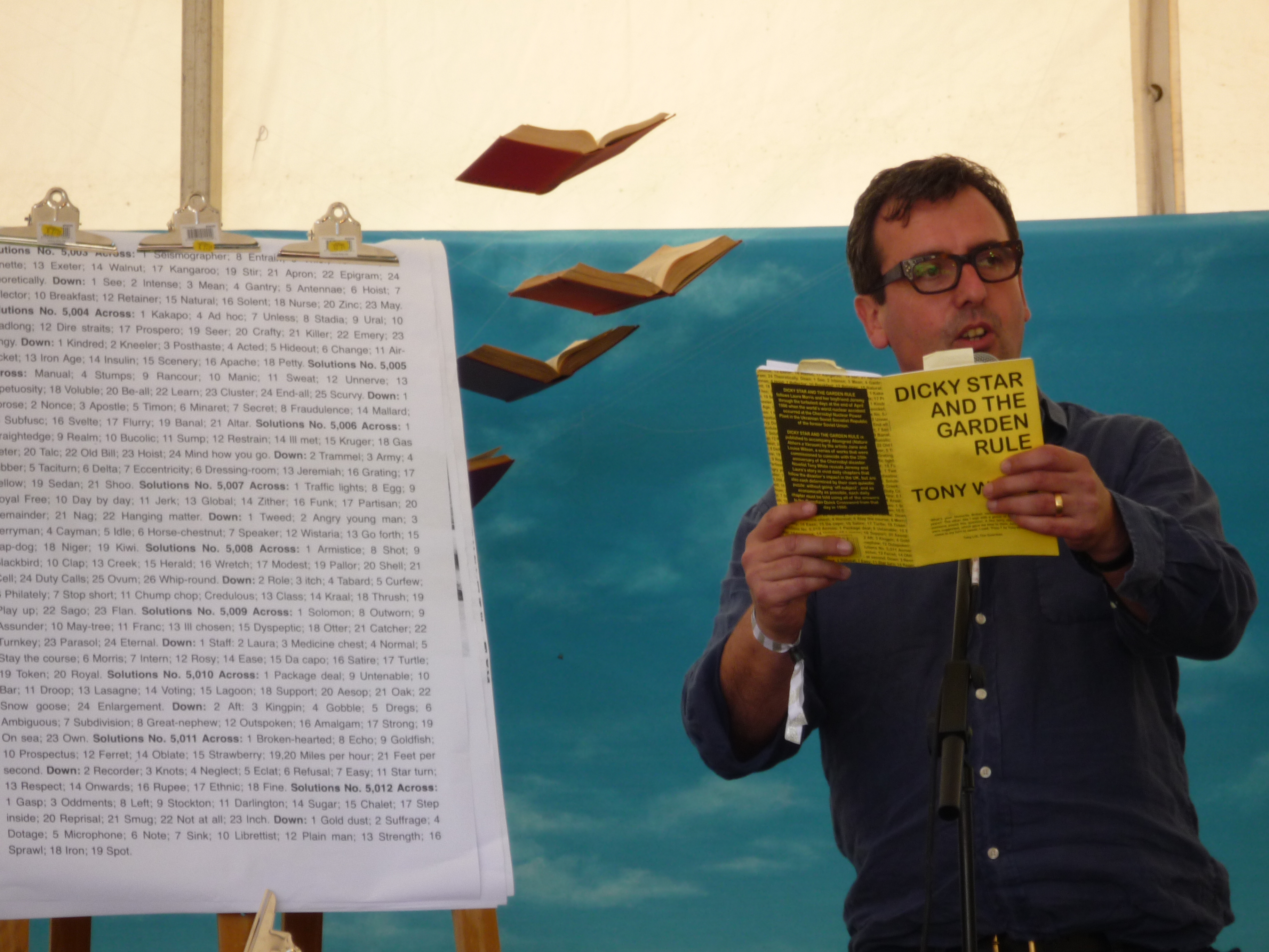 Reading from my specially commissioned novella Dicky Star and the Garden Rule to the generous and attentive audience gathered at the Five Dials stage at Port Eliot was a delight. It was a great opportunity too, to talk in more detail not only about the book itself and the Chernobyl disaster, but also about the ‘interwar period’* generally, the Clash busking tour of May 1985 and the Guardian Quick Crossword.