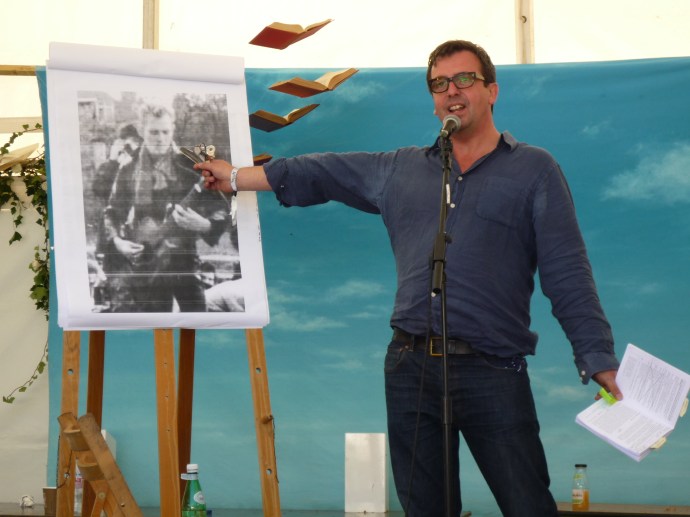 A word of warning: I may make this look easy, but devising a readings-based set for an outdoor festival around the use of flipcharts, with the concomitant need to carry an ungainly and fragile bundle of A1 paper to and around said festival in potentially volatile weather conditions and to improvise a flipchart stand with extra-strong bulldog clips during a two-minute turnaround is dangerous and may pose risks to your long-term well-being so should not be attempted by the inexperienced writer.