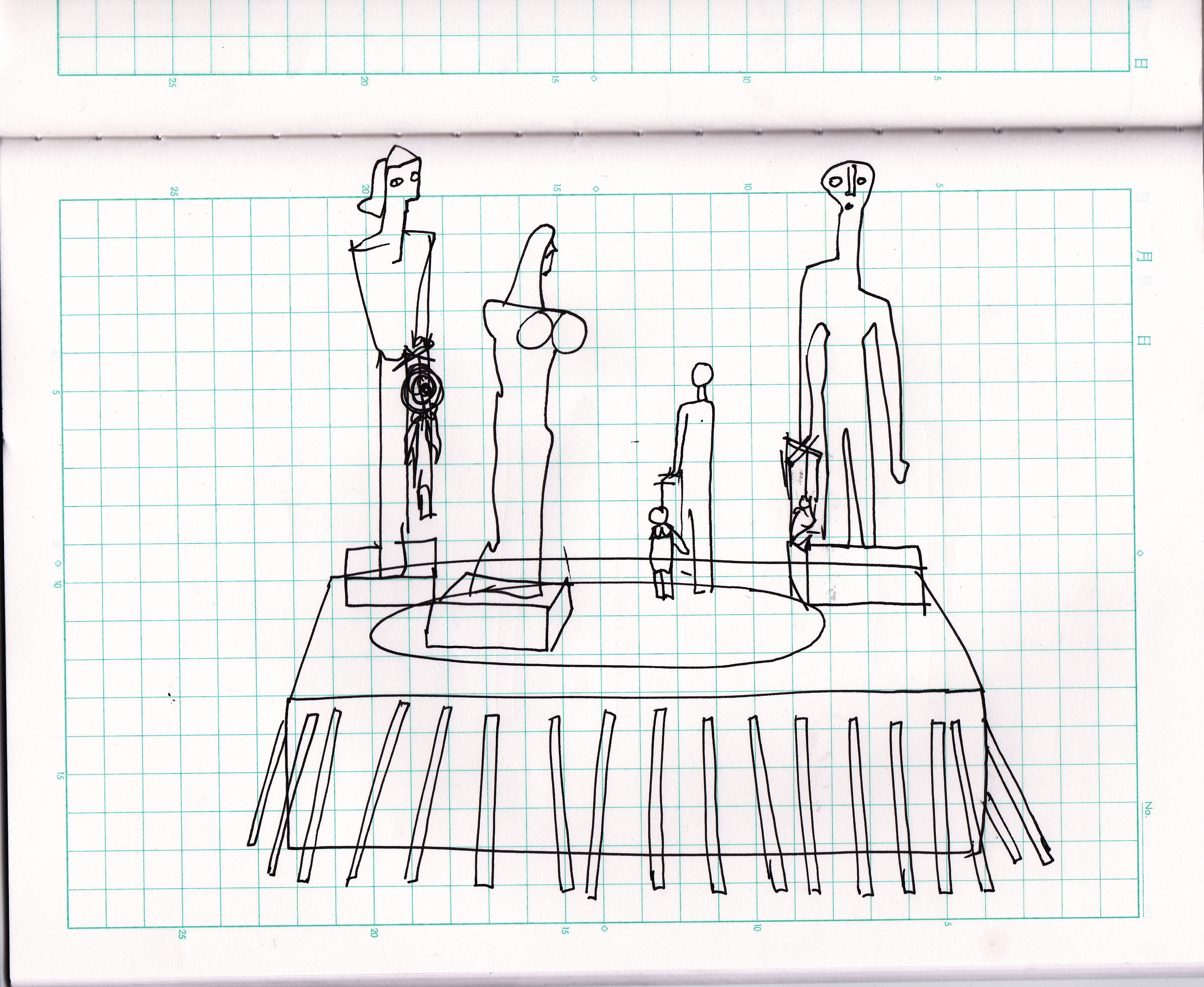 Steven’s email said that he was looking for a ‘surrealist’ short story about a stage filled with large sculptures of puppeteers holding marionettes. The puppeteers, he suggested, could be clowns or knights…