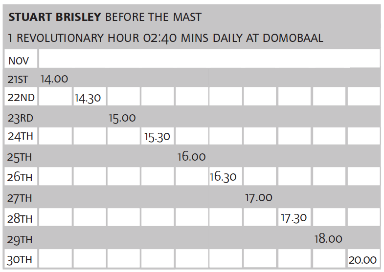 Before the Mast is the title of a new live work by the artist Stuart Brisley that will take place at DOMOBAAL, London from 21st November 2013. (For times and dates click-through the timetable at right.)