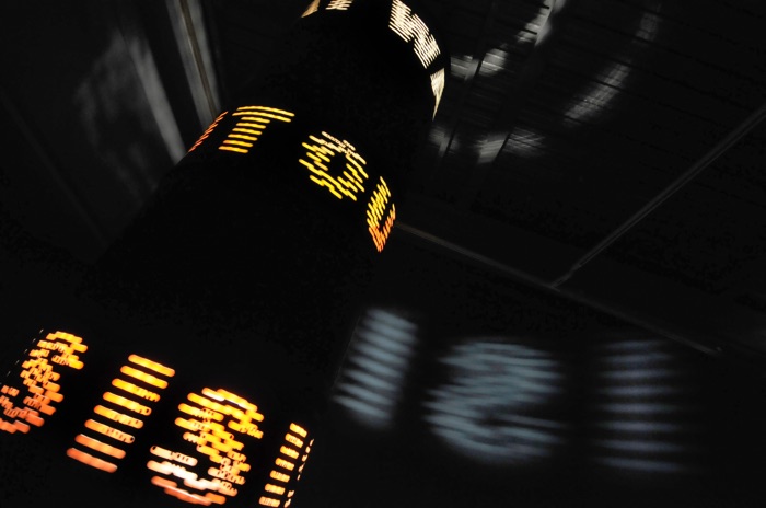 Liliane Lijn, Way Out Is Way In, 2009. Painted steel solvent drums, 3 phase motor, inverter & programmed speed & direction control chip, halogen lighting 300 x 60cm. Photo © the artist.