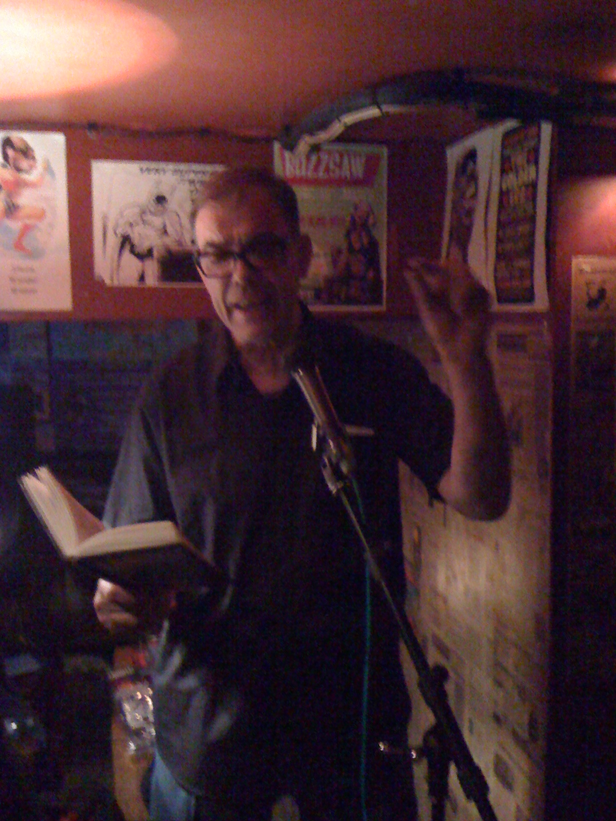 Mally and I stayed in touch after our meeting at Swells’s memorial gig, and we quickly hatched plans to do some events together. First off was a London warm-up in Shoreditch’s tiny Three Blind Mice bar, before he went off to do a festival in Ireland. It was a great night; the best fun. Mally was reading from a new collection I,BRUTE! and he was on brilliant, deadpan form, hilarious and charismatic, and he had the audience eating out of his hand before, during and after the gig. What a charmer! THE END.