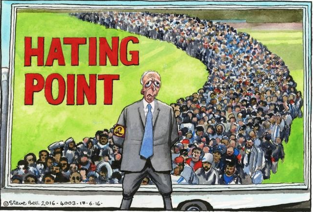 Steve Bell in the Guardian newspaper made this connection even more explicit, with his ‘Hating Point’ parody.