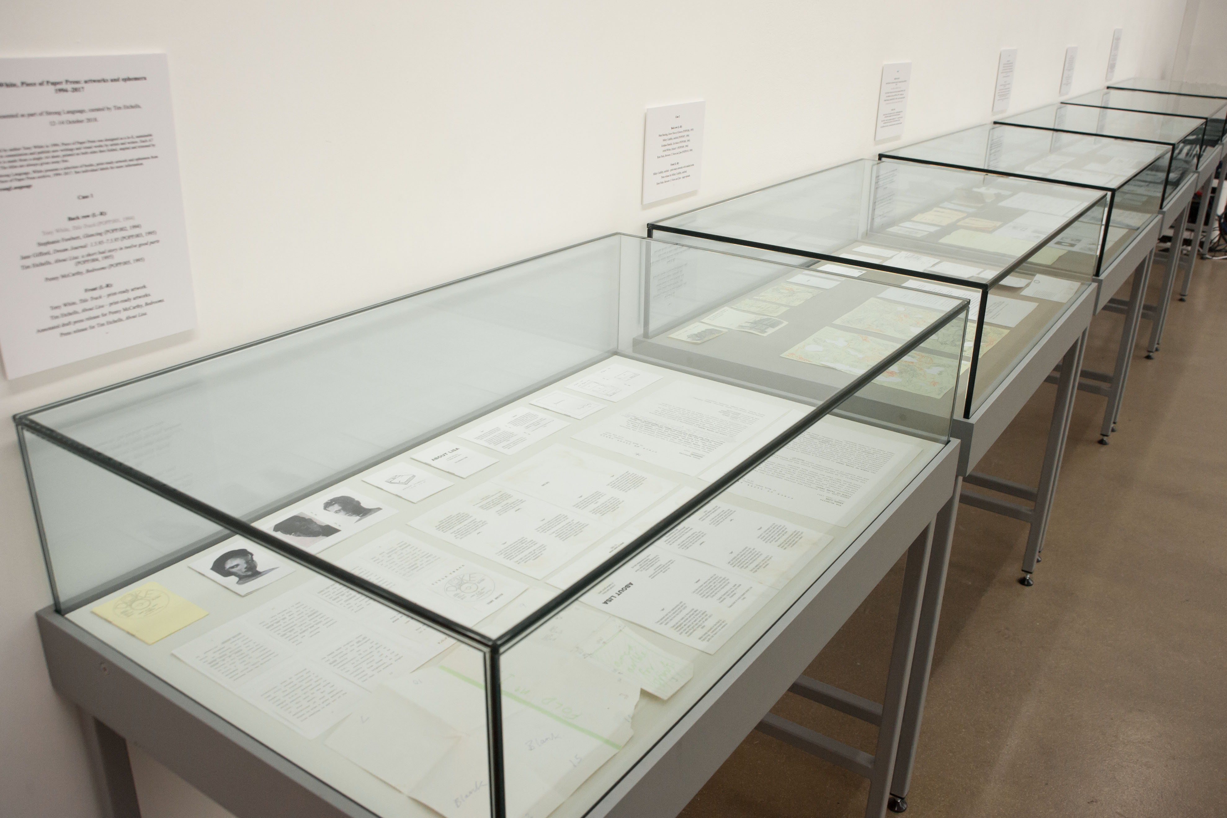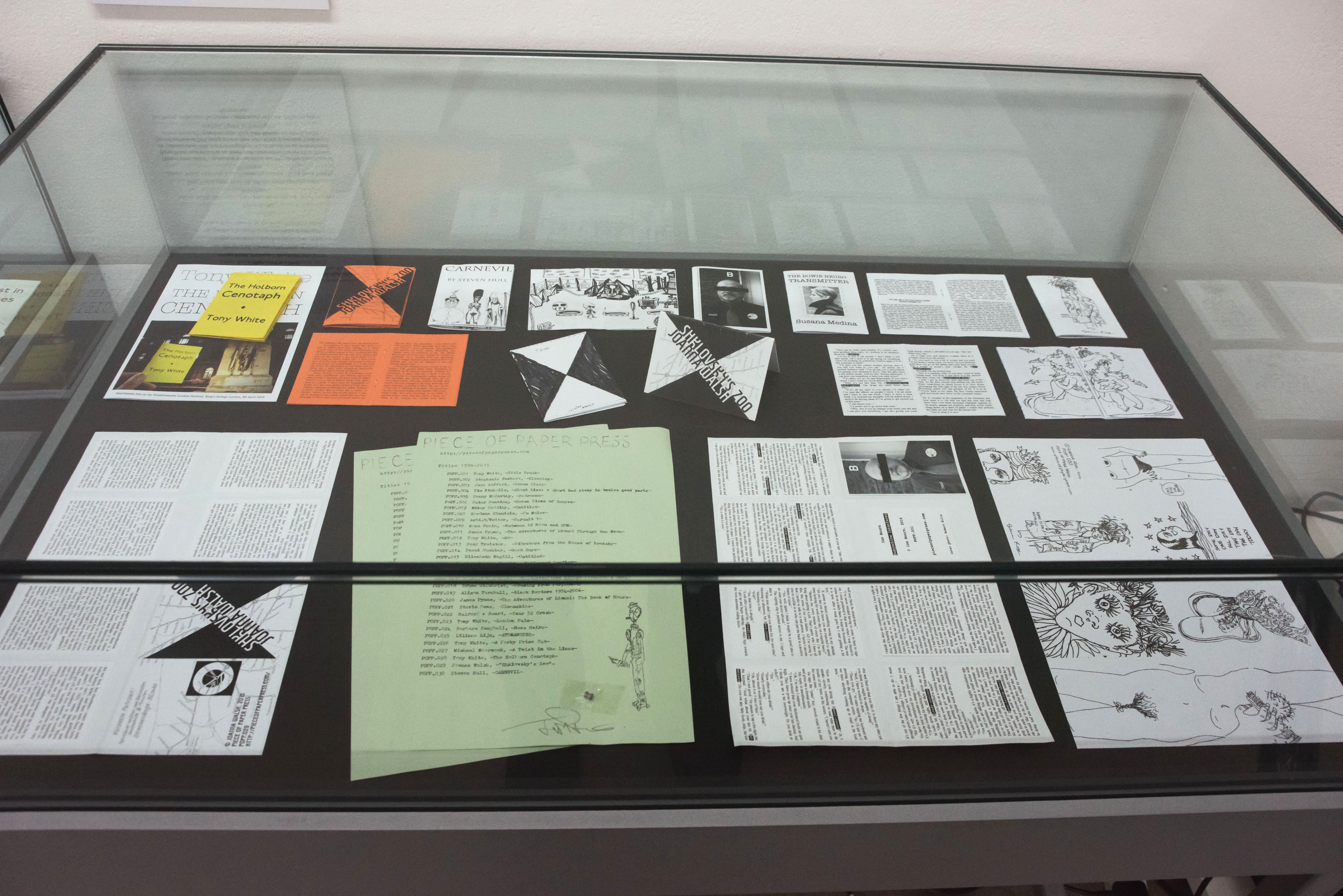 ‘Piece of Paper Press: Artworks and Ephemera 1994–2017’, in the Project Space, Site Gallery, Sheffield. Display view. (Photo: Chris Saunders)