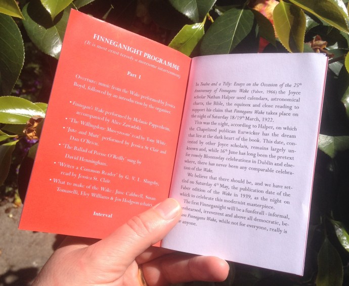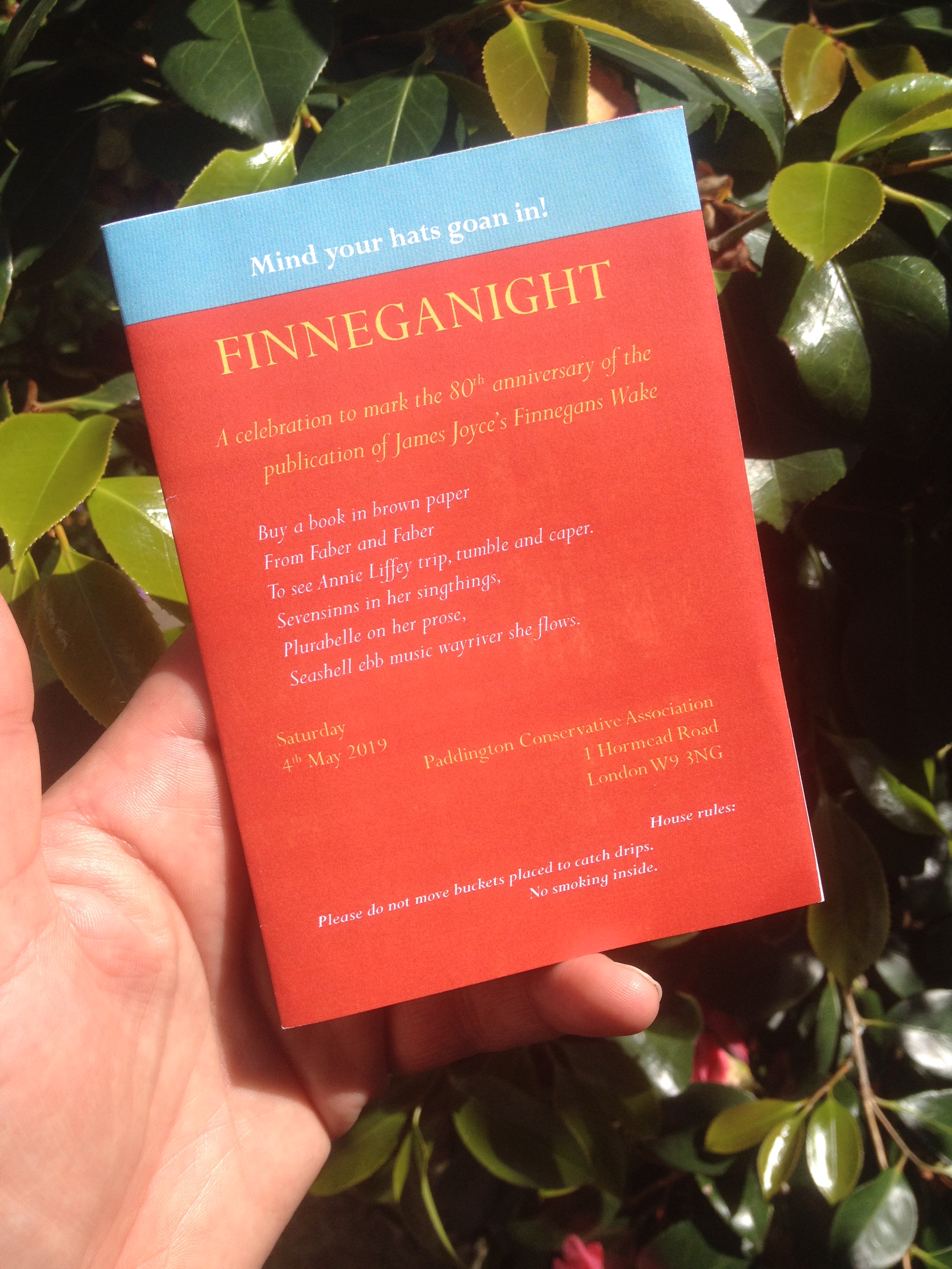 Described as ‘a one-off pop-up Dadaist cabaret’, Finneganight brought together a brilliant company of authors and performers for readings, discussion and performances. I was honoured to have been invited to be part of it.