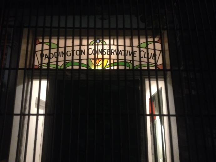 Follow me through the heavy steel mesh security grill and into the derelict former Paddington Conservative Club, scene of the inaugural Finneganight, which was held here on Saturday 4 May 2019 to celebrate the 80th anniversary of the first publication of James Joyce’s novel Finnegan’s Wake by Faber and Faber.