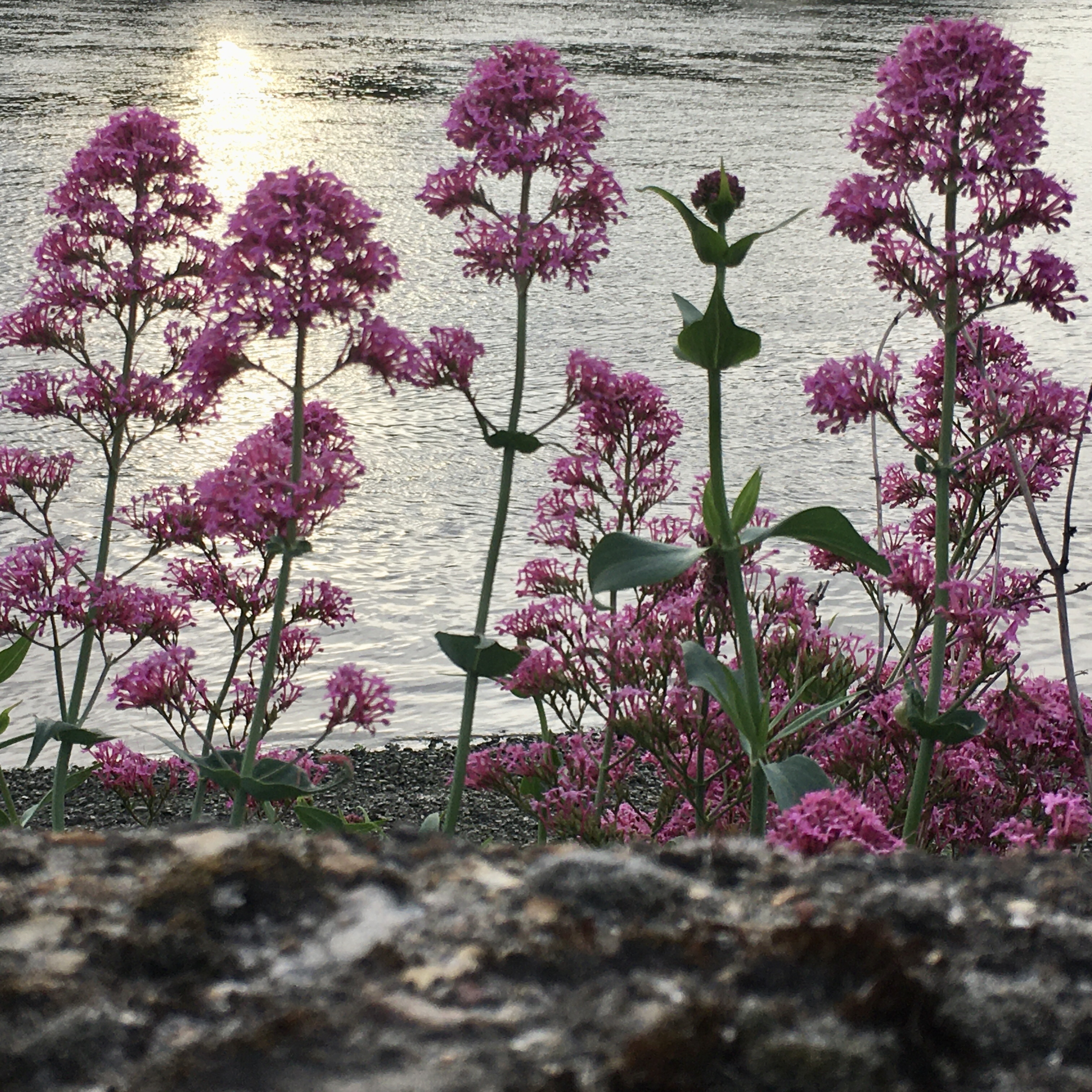 Red valerian growing from the concrete balustrade, Thames riverside in Barnes, SW London yesterday evening. It was valerian day in the French Republican Calendar four days ago!