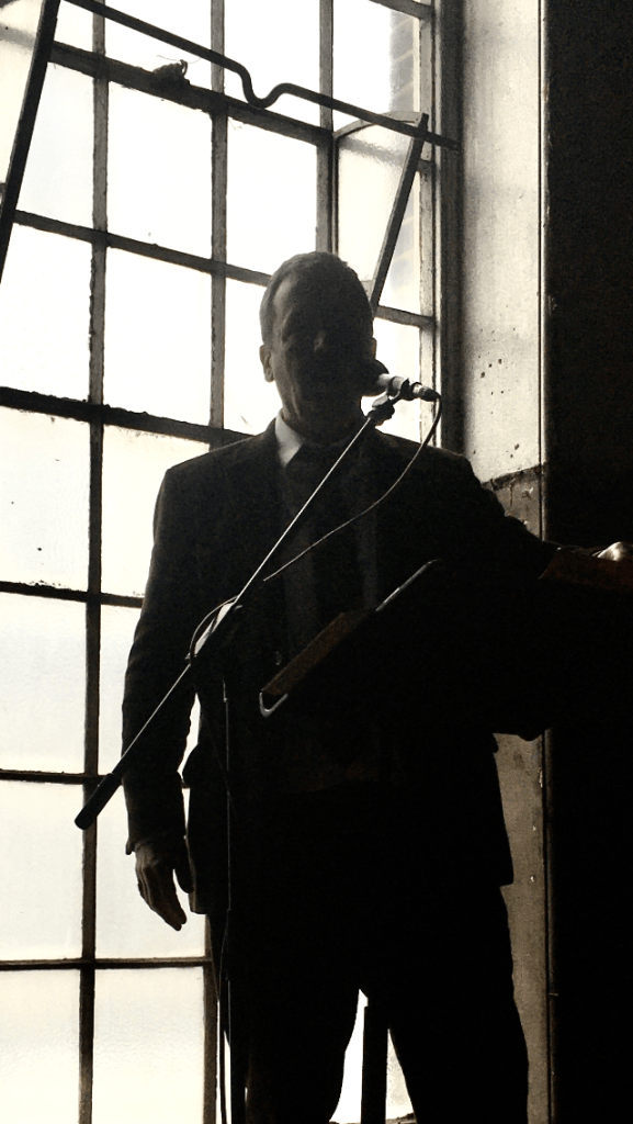 Thanks to Chihiro Ono for sharing this great photo of yesterday’s reading for Resonance Extra, in what must be one of the most spectacular yet apt settings for a reading of The Holborn Cenotaph yet: the former chapel on Borough Road that has been the Resonance studio for the past year. At one point the sun flooded in behind me – and Chihiro seems to have caught that moment on camera. Thank you, Chihiro!