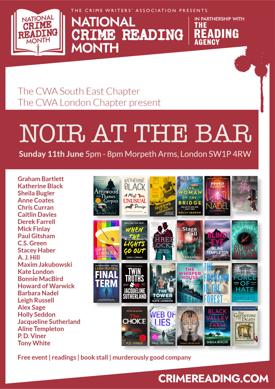First up, on 11th June I’m appearing alongside a great line-up of authors including Graham Bartlett, Katherine Black, Sheila Bugler, Anne Coates, Chris Curran, Caitlin Davies, Derek Farrell, Mick Finlay, Paul Gitsham, C.S. Green, Stacey Haber, A.J. Hill, Maxim Jakubowski, Kate London, Bonnie McBird, Howard of Warwick, Barbara Nadel, Leigh Russell, Alex Sage, Holly Seddon, Jacqueline Sutherland, Aline Templeton, P.D. Viner, and me…