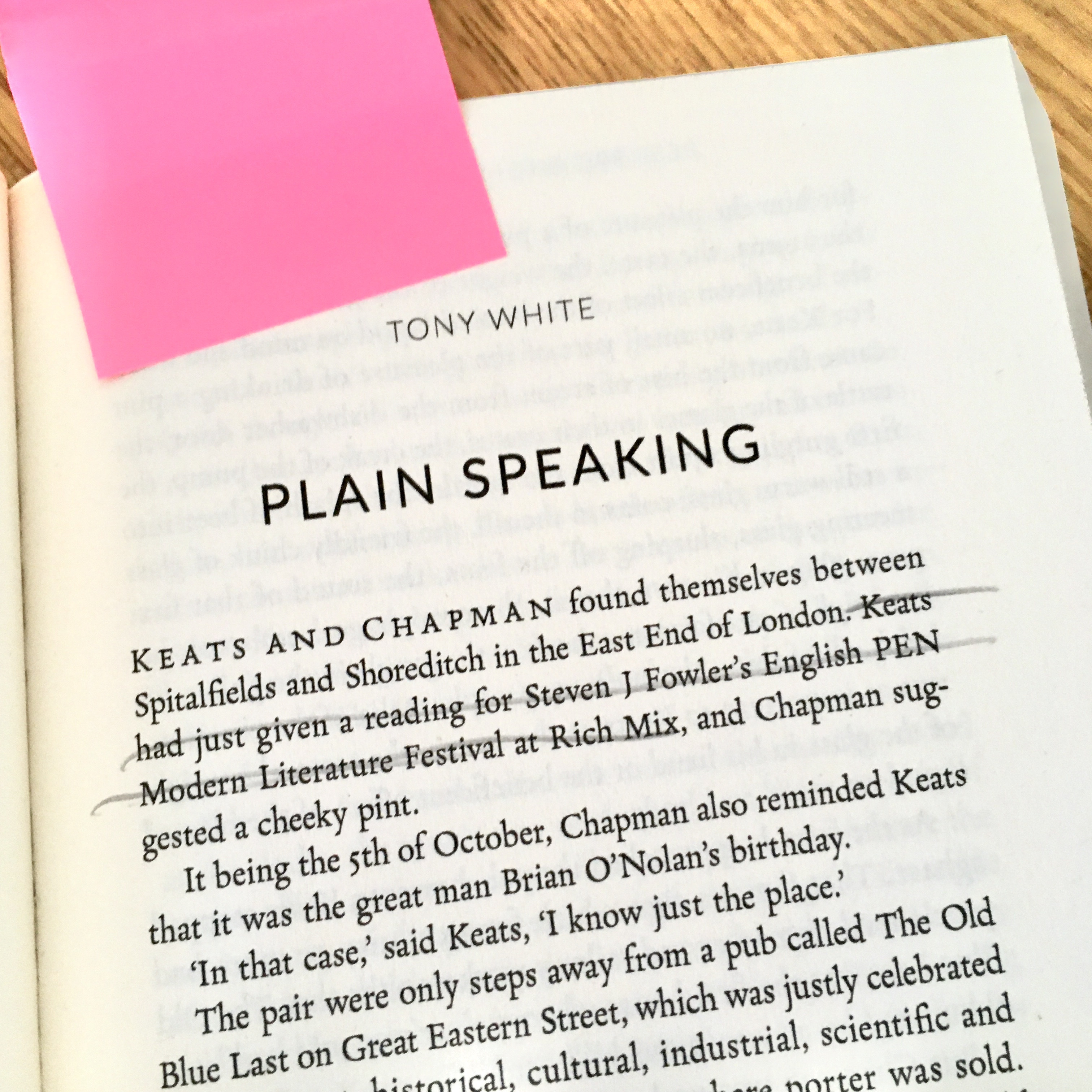 I’m doing a half-hour set of three short pieces. I’ll kick off with ‘Plain Speaking’, my tribute to Bloomsday co-founder Brian O’Nolan, better known as Flann O’Brien, which is now collected in Nicholas Royle’s Best British Short Stories 2022 (Salt Publishing) of course.
