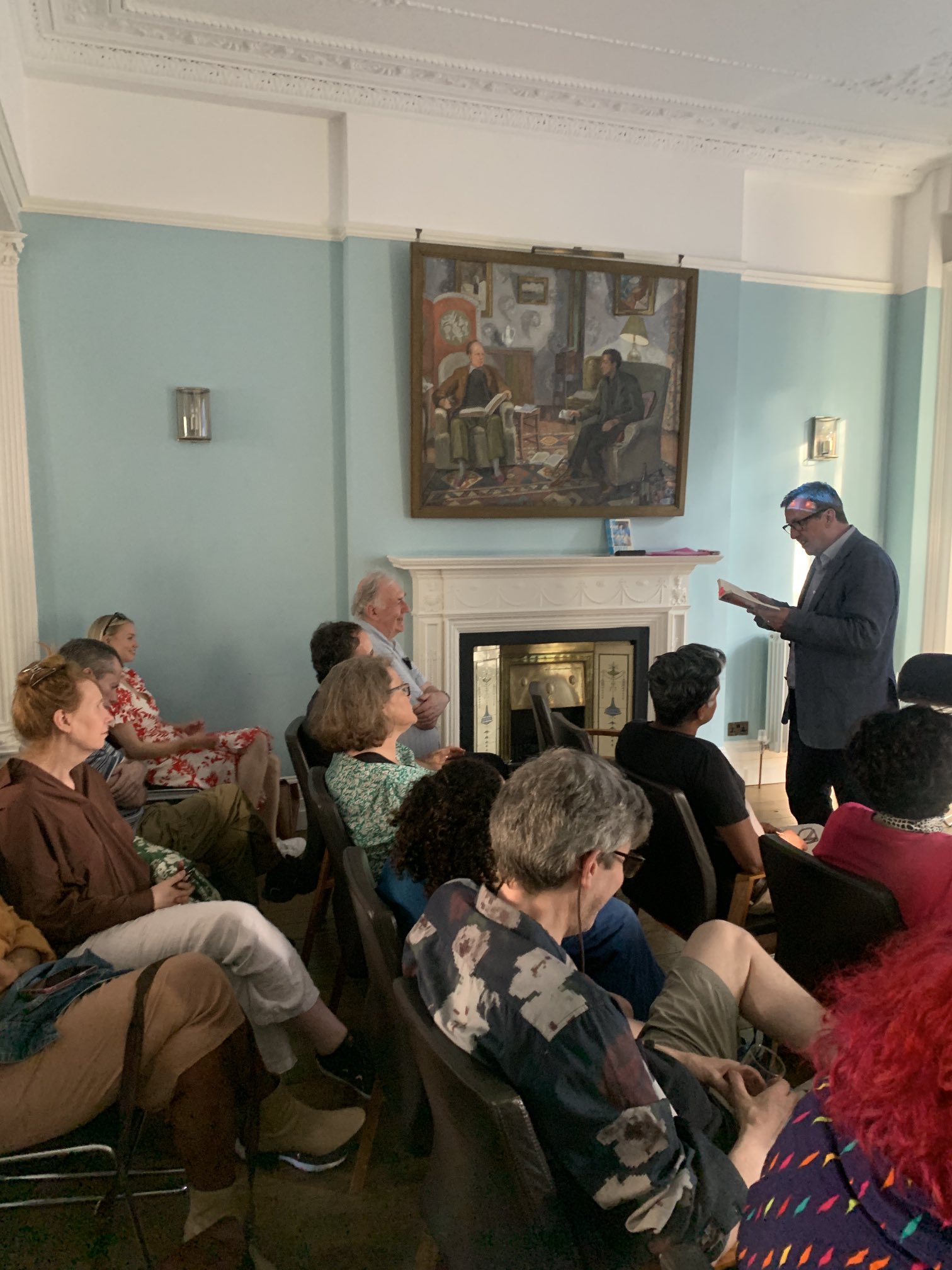 I did a half-hour set* under the watchful eyes/paintings of Duncan Grant (pictured) and Vanessa Bell, for a fantastic and enthusiastic audience, followed by a really fascinating talk from my fellow speaker, the pioneering computer artist Paul Brown (with interlocutor Dr Joel McKim, Director of the Vasari Centre for Art and Technology at Birkbeck).
