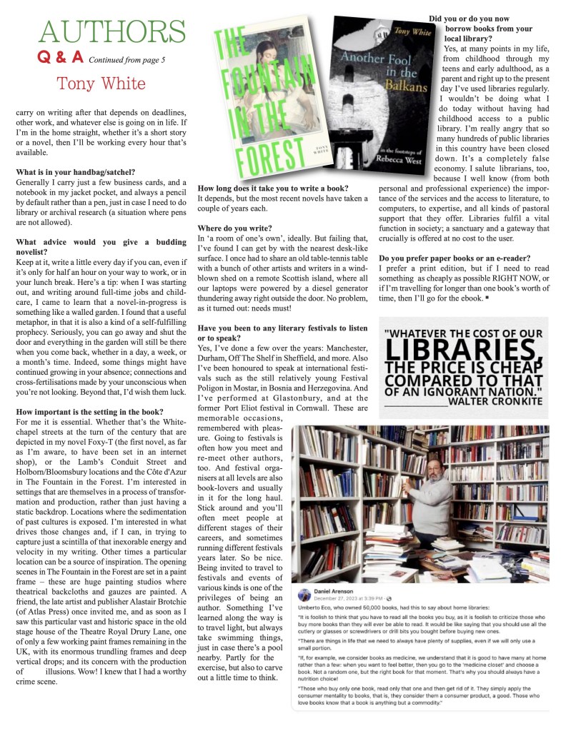 It was a great pleasure (virtually, at least) to visit the Tregolls Lodge Book Club in Truro, Cornwall, a few months back. Book groups and book clubs are important to their members, to authors, and to the book industry more widely. It’s always a great pleasure to hear that a book club has been reading one of my novels, and even sometimes to get feedback from them, or – more rarely – an invitation to visit. This one had been in the diary for a while, so it was great to finally meet. Thanks all for your hospitality and great chat! Howard and Jeannie who run the book club also publish a monthly newsletter compilation of interviews with visiting authors, which since we’ve been in touch I have read with interest (and always learn something from other writers). Then it was my turn.