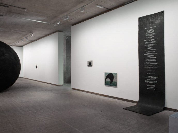 It was a fantastic show, and I felt especially drawn to the large hanging scroll of marine rubber on the right of this photograph. Entitled ‘Tongue’, this is a book-ish text work that remixes the genres and jargon of the colophon page and the gallery wall text.