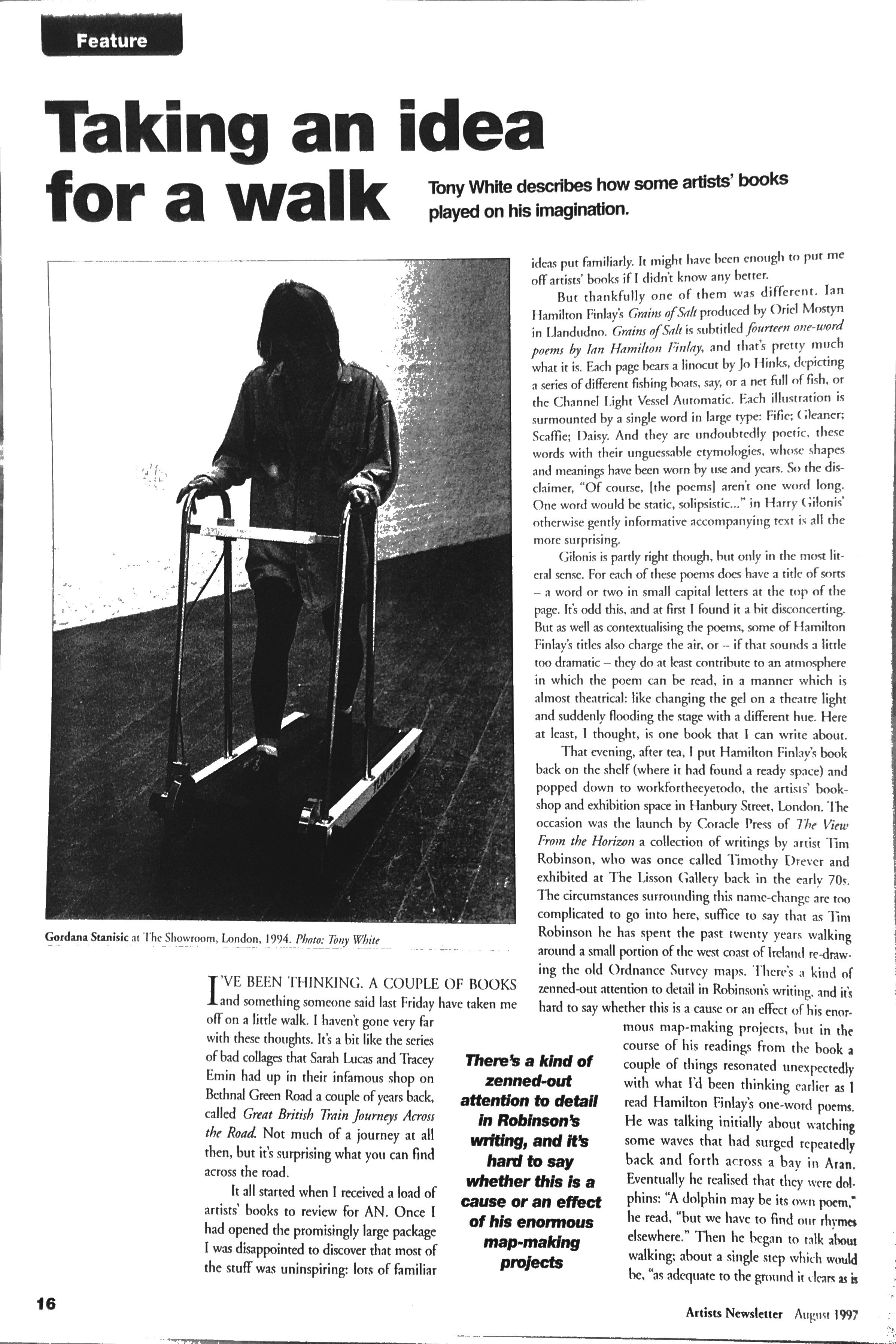Tony White, ‘Taking an idea for a walk’, AN, August 1977